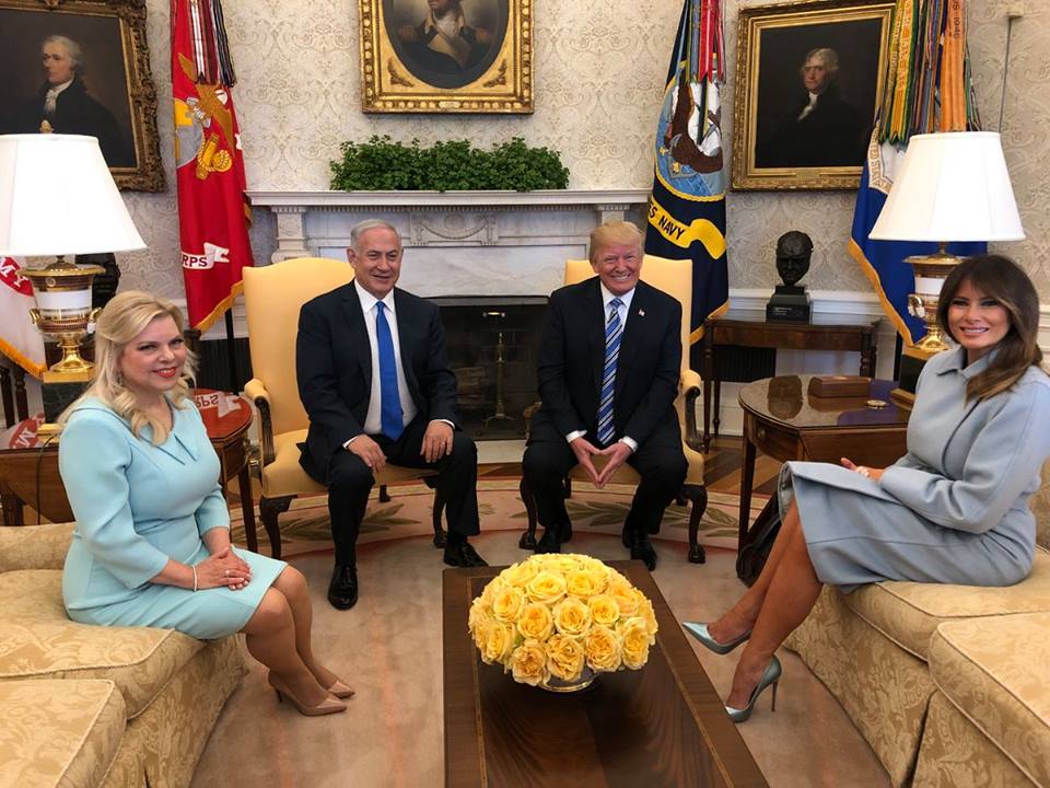 يلتقي الآن الرئيس الأمريكي دونالد ترامب ورئيس وزراء الاحتلال بنيامين نتنياهو في اجتماع هو الخامس منذ تولي ترامب مهام منصبه الراسي عام 2017. وكما كان متوقعا سيناقشان خلال اجتماعهما عملية نقل السفارة الأمريكية إلى القدس المحتلة و الموضوع الإيراني، والشرق الأوسط.