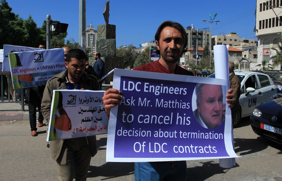 مهندسو العقود اعتصموا بعد قرار "الأونروا"، إيقاف عقود 95 مهندسًا يعملون على عقد الـ LDC للعام السابع على التوالي، حيث تم الاتفاق على تثبيت عدد منهم خلال جلسات متواصلة.