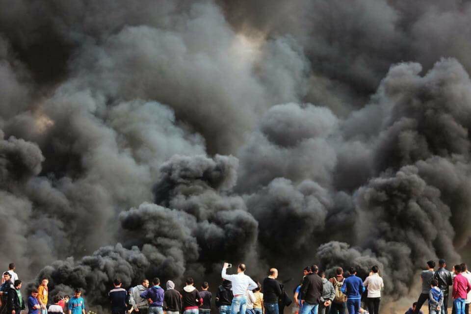 وكان الآلاف من المواطنين، زحفوا منذ ساعات الصباح، باتجاه المناطق الحدودية على مقربة من السياج الفاصل، للمشاركة في مسيرات شعبية تحت شعار "جمعة الكاوتشوك"، في إطار إحياء ذكرى يوم الأرض والعودة إلى الديار، التي هجروا منها على يد الاحتلال الصهيوني.