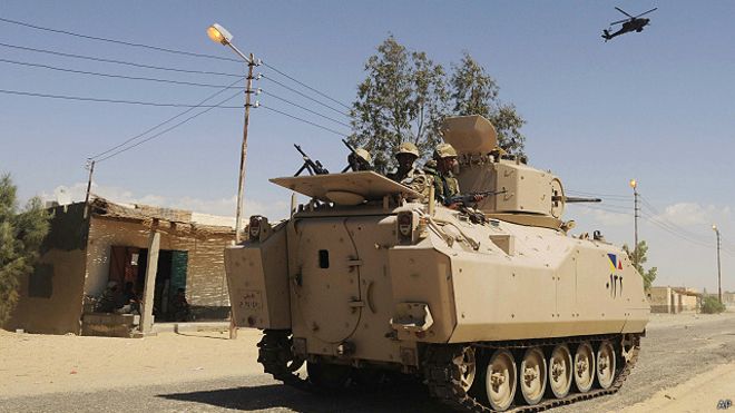 في ذات السياق أسفرت حملات الجيش المصري البرية والجوية برفح والشيخ زويد عن استهداف سيارتين تابعتين لجماعات مسلحة، وتحملان مدافع مضادة للطيران، و كانت تقلّ 7 عناصر، قضوا جميعاً في الاستهداف، ومن ضمنهم قائد تنظيم بيت المقدس في قرية المقاطعة جنوب الشيخ زويّد.