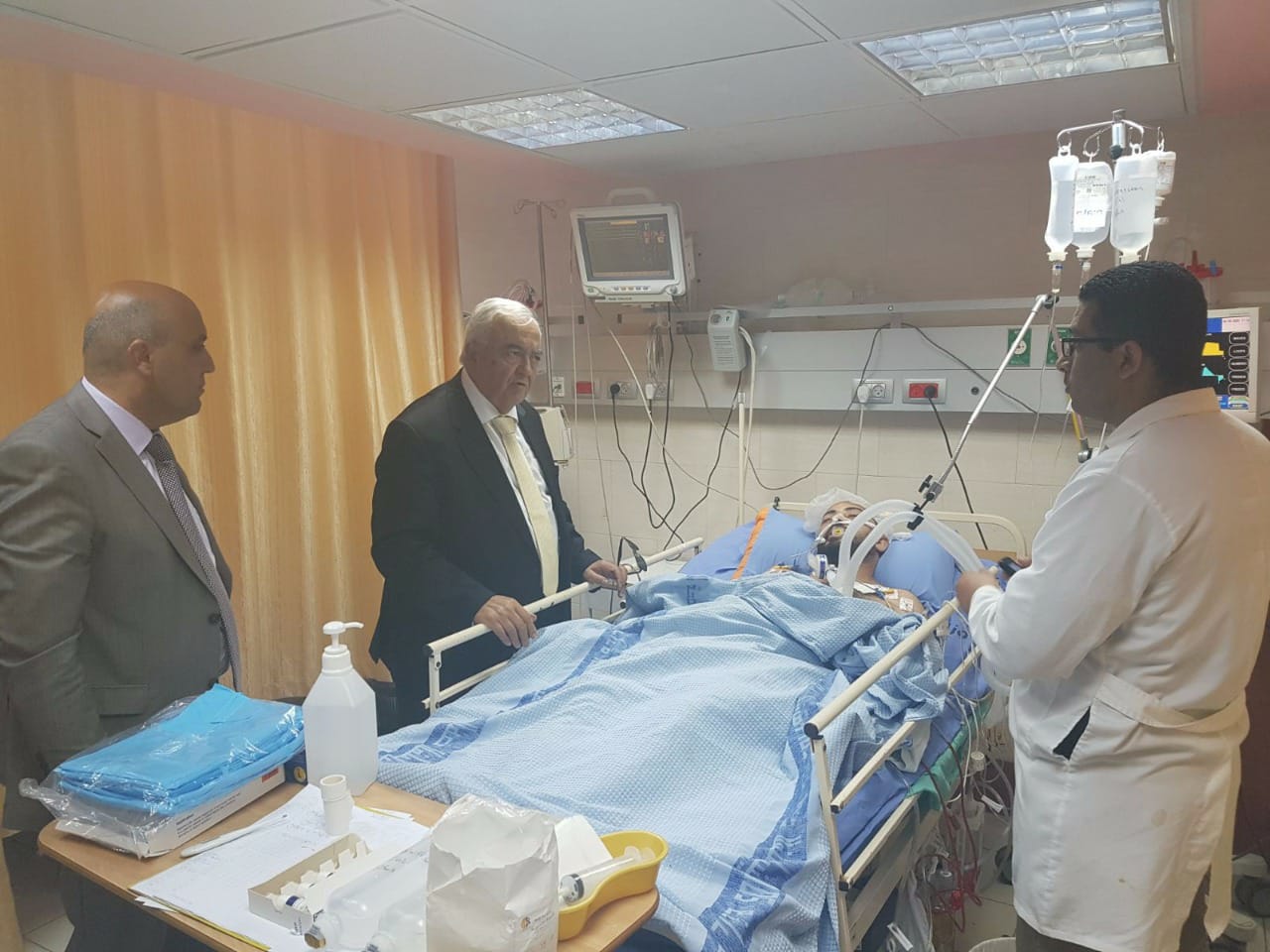 زار وزير العمل د. مأمون أبو شهلا، اليوم الاثنين، الصحفي المصاب أحمد أبو حسين، الذي يرقد في غرفة العناية المكثفة في مجمع فلسطين الطبي في مدينة رام الله.