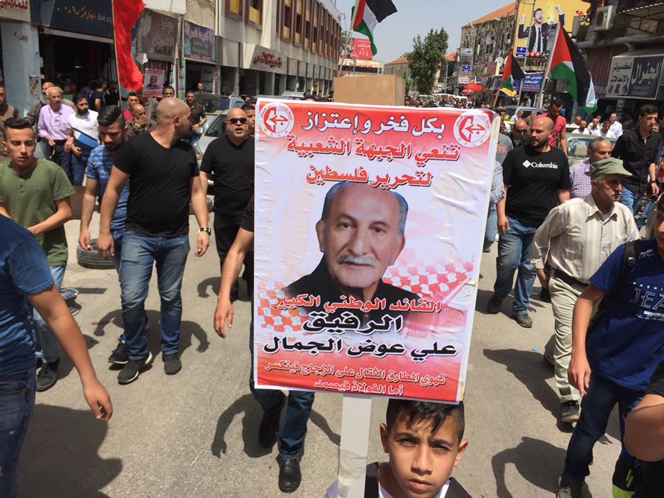 ونعى الأمين العام للجبهة الشعبية لتحرير فلسطين أحمد سعدات باسم المكتب السياسي واللجنة المركزية ومنظمة الجبهة الشعبية في سجون الاحتلال وجميع كادرات الجبهة في الوطن والشتات المُناضل التاريخي علي عوض صالح الجمّال من مدينة جنين، والذي رحل يوم أمس الاثنين بعد حياة نضالية حافلة خاض خلالها تجربة اعتقالية متميزة، والذي يجعله أحد أهم أساطير الصمود في الاعتقال.