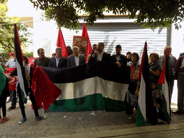 واستهل الاعتصام بكلمة لنائب مسؤول المكتب الإعلامي للجبهة الشعبية في لبنان، حيّا فيها صمود الأسرى البواسل في سجون العدو الصهيوني.