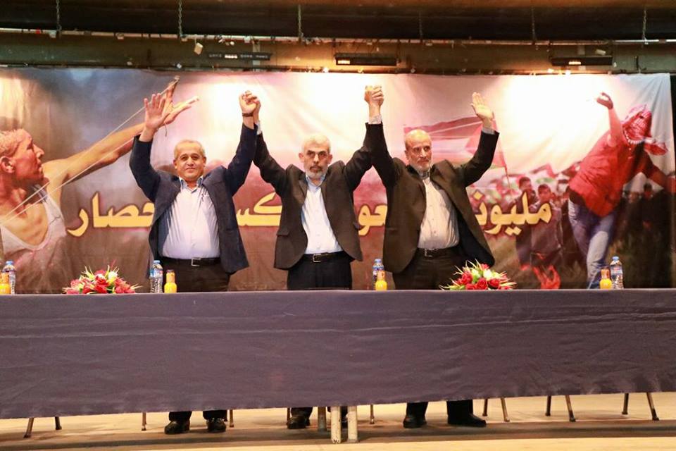 من جهته، أكد قائد حركة حماس في غزة يحيى السنوار، أن "الفصائل تراهن على شعبنا بأننا سنفرض أنفسنا على طاولة العالم، وأنه لا أحد يستطيع أن يفرض علينا ما لا نريد أو لا نقبل ما لا ينسجم مع ثوابتنا وأهدافنا الوطنية".