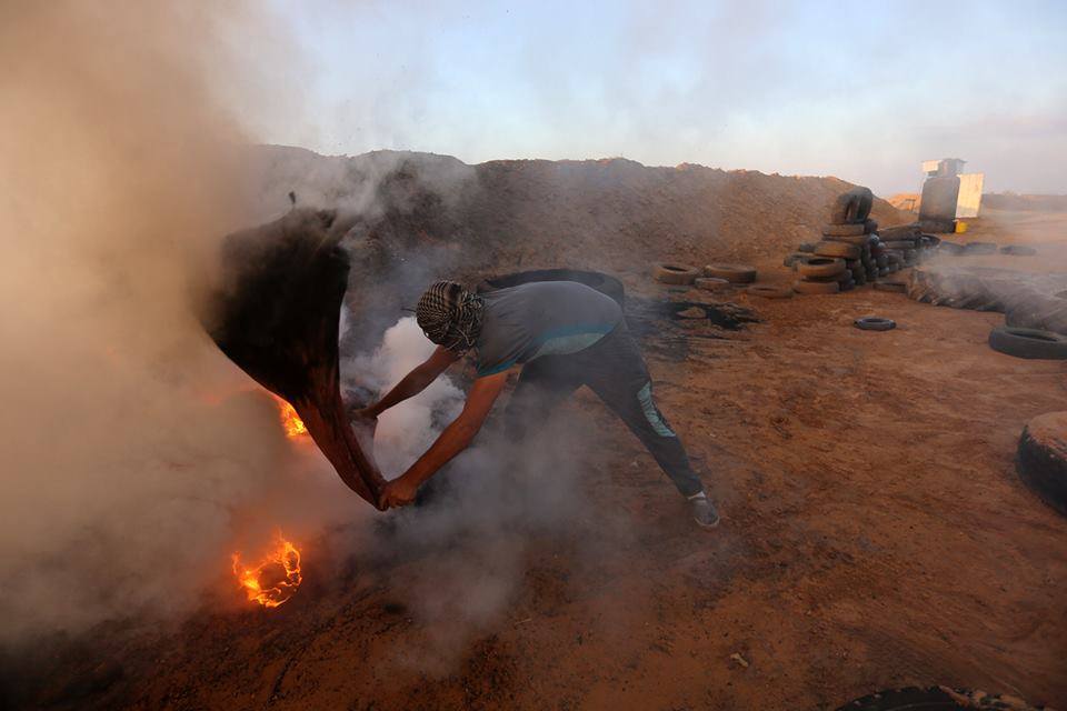 كما قام جيش الاحتلال بإحراق خيام مخيم العودة شرقي جباليا شمال قطاع غزة، وخان يونس جنوب القطاع مع اطلاق النار صوب المخيمين.