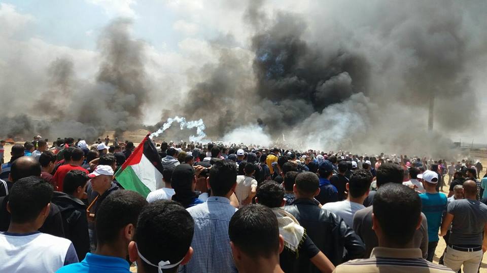 وخرج الفلسطينيون اليوم الاثنين للمشاركة في "مليونية الزحف نحو الحدود" بدعوة من الهيئة الوطنية العليا لمسيرة العودة وكسر الحصار احياءًا لنكبة الشعب الفلسطيني، ورفضًا لنقل السفارة الأمريكية للقدس، في إطار فعليات مسيرات العودة.