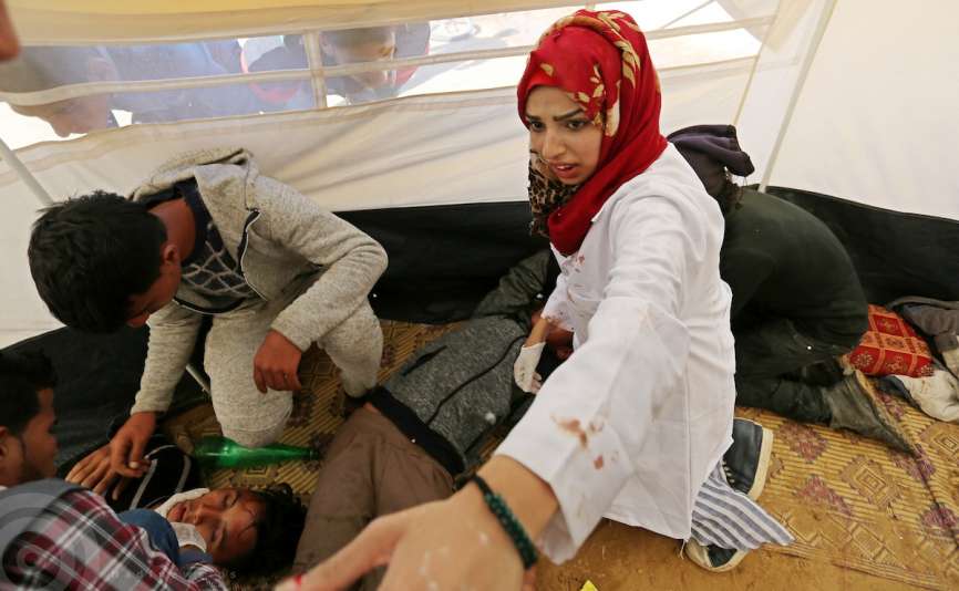على باب منزل عائلتها، اجتمعَ عشرات الفلسطينيين ينتظرونَ وصولَ جثمان أول شهيدةٍ من الطواقم الطبية العاملة في اسعاف المصابين بمسيرة العودة، الشابة رزان النجار ابنة الواحد وعشرين عامًا، والتي بدأت رحلتها كمسعفة متطوعة بجمعية الإغاثة الطبية الفلسطينية على خطوط التماس بينَ الاحتلال والمتظاهرين السلميين شرقَ مدينة خانيونس منذ الجمعة الأولى للمسيرة، وحتى الجمعة العاشرة والأخيرة التي رحلت فيها شهيدةً برصاصةٍ متفجرةٍ في الصدر.