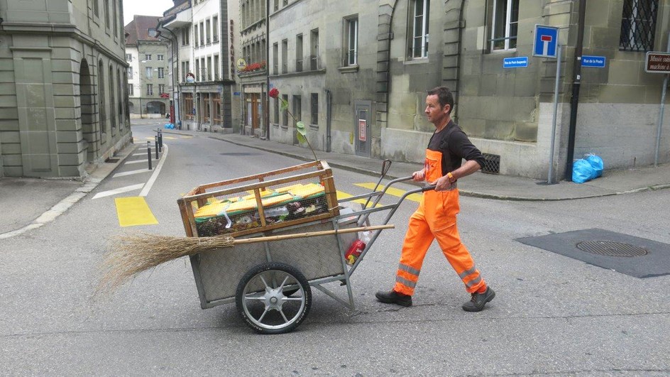 "وردة ومكنسة"، عنوان كتاب ليس مؤلفة سوى رافع الزبالة في الأحياء العتيقة لمدينة فريبورغ السويسرية.