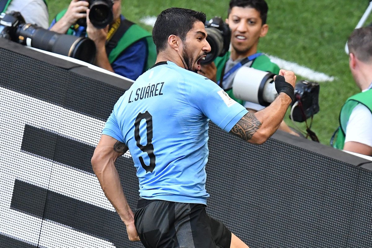 وفي مباراته رقم 100 بمقيص منتخب بلاده، خطف لويس سواريز هدف التقدم للـ "السيليستي" بعد خطأ فادح من محمد العويس الذي خرج لإبعاد ركنية كارلوس سانشيز دون أن يصيبها فوصلت للـ "لويزيتو" الذي تابعها في الشباك، ليصبح أول أوروغواياني يسجل في ثلاث نسخ من كأس العالم (2010-2014-2018).