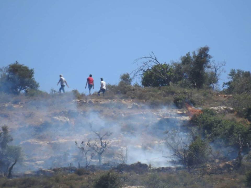 أضرم مستوطنون، اليوم الجمعة، النار في مناطق واسعة من جبال بيت فوريك شرق مدينة نابلس في الضفة المحتلة.