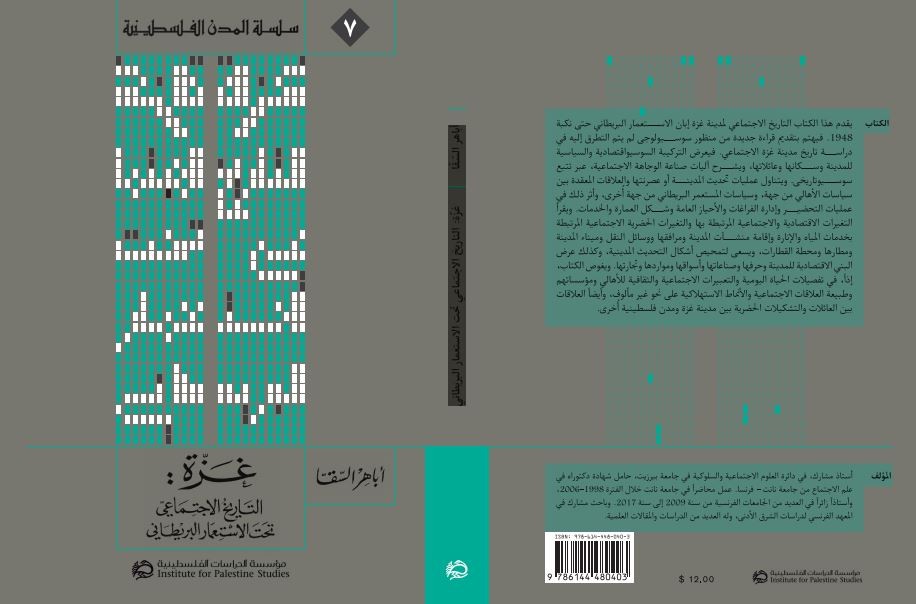 صدر حديثاً عن مؤسسة الدراسات الفلسطينية كتاب "غزة: التاريخ الاجتماعي تحت الاستعمار البريطاني، 1917 – 1948"، من تأليف الدكتور في علم الاجتماع أباهر السقا، وهو الكتاب السابع ضمن "سلسلة المدن الفلسطينية".