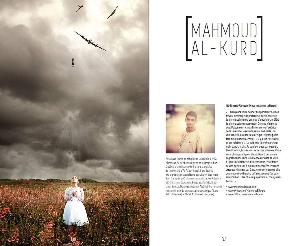 حيث حصلت سلسلة صور "نحن نتنفّس حرية" لمحمود الذي يدرس اللغة الانجليزية في جامعة الأزهر على المركز الأول في مهرجان باريس الدولي للفنون والثقافة " Palestine In & Out ". وقلدت اللجنة المنظمة الكرد و لقد حصلت بلقب الفنان الفلسطيني و بترشيح من قبل 15 عضو تحكيم داخل فرنسا و خارجها من دول العالم.