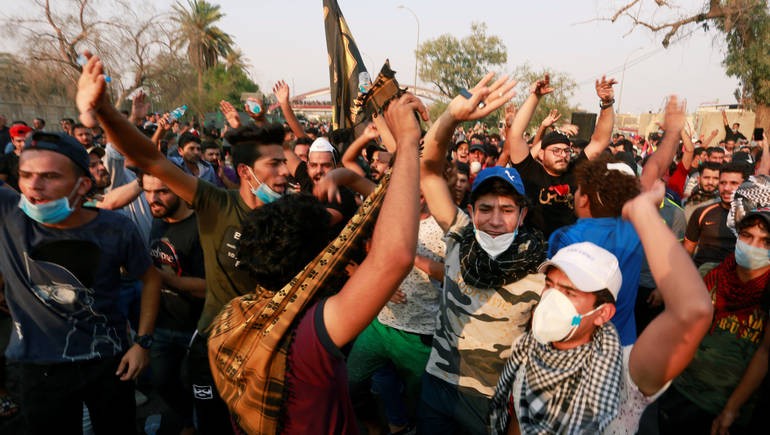 وقتل 10 من المتظاهرين، على الأقل، منذ يوم الاثنين الماضي في مدينة البصرة. كما أضرم محتجون النار في مبان حكومية ومكاتب تابعة لأحزاب سياسية، ووقعت اشتباكات مع قوات الأمن.