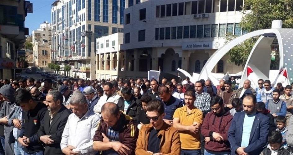 شارك مئات المواطنين، ظهر الجمعة، في أداء الصلاة على دوار ابن رشد وسط مدينة الخليل، احتجاجًا على قانون الضمان الاجتماعي الذي ستطبقه حكومة الوفاق الوطني بدءًا من الشهري الجاري.