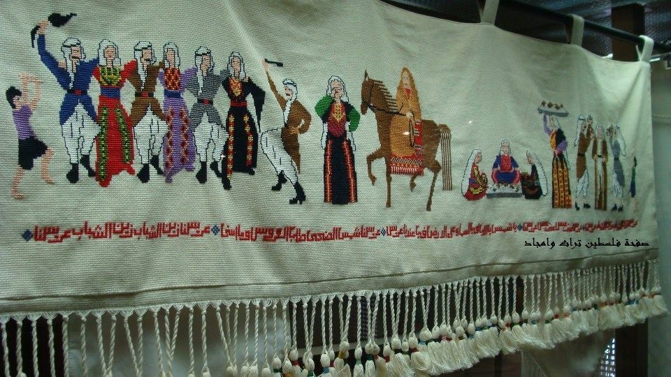 وتُتابع حسناء، التي تعمل في مركزٍ نسويّ مُختصّ بتعليم التطريز "إنّ أوّل ما تتعلمه النساء في المركز تطريز مشهدٍ يُحاكي العرس الفلسطيني، للتأكيد على الهوية الفلسطينية وإيصال الإرث الثقافي،ويظهر في اللوحة بعض من المراسم والعادات الشعبية التي تُرافق هذه المناسبة، مثل: حمّام العريس والحنّة والزفّة".