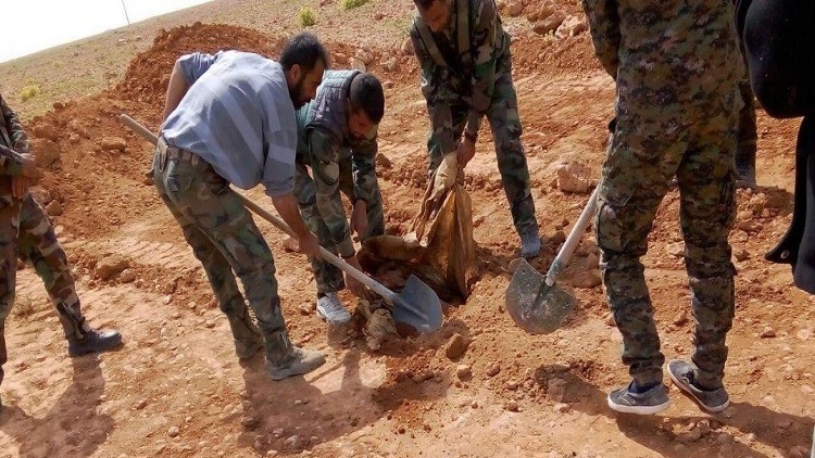 عثرعلى مقبرة جماعية تضم نحو 3500 جثة دفنها تنظيم داعش الإرهابي، في مدينة الرقة السورية، وتعد الأكبر والأقدم حتى الآن، على عمق قدمين تحت أرض زراعية على مشارف المدينة.