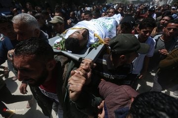 شيّعت الجماهير الفلسطينية، ظهر يوم السبت، جثمان الشهيد عبد الله جمعة عبد العال (24 عامًا)، الذي استشهد خلال مشاركته في مسيرات العودة يوم الجمعة.