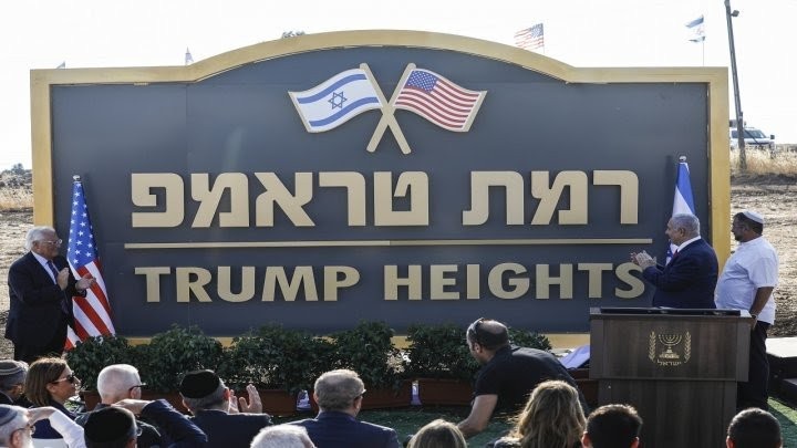 عقدت حكومة الاحتلال الصهيوني برئاسة بنيامين نتنياهو جلستها الأسبوعية اليوم في مستوطنة "كيلا" في االجولان المحتل، وأعلن فيها قرار إنشاء مستوطنة "رامات ترامب" التي افتتحت أعمالها رسميا من قبل نتنياهو وسميت تكريما للرئيس الأمريكي دونالد ترامب بسبب اعترافه بالجولان العربي السوري جزء من "إسرائيل" وهي خطة عبرت عن عداء الولايات المتحدة للحقوق العربية وتخالف كل القوانين الدولية وقرارات مجلس الأمن الدولي وأثارت رفضا واسعا حول العالم.