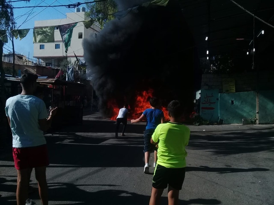 وكانت قد اندلعت احتجاجات واسعة منذ ساعات الصباح في مُخيّمات اللاجئين الفلسطينيين في لبنان، احتجاجاً على إجراءات وزارة العمل اللبنانيّة، حيث أشعل المُحتجّون في مُخيّم الرشيدية بمدينة صور الإطارات المطاطيّة ومنعوا المركبات المُحمّلة بالبضائع من دخول المُخيّم، منعاً لمُوزعي المُنتجات اللبنانية من دخول المُخيّمات. وفي مُخيّم برج الشمالي تجمهر الفلسطينيّون على المدخل، فيما أقفل المُحتجّون مُخيّم البداوي بشكلٍ كامل.