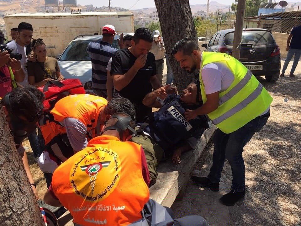 دانت نقابه الصحفيين الفلسطينيين، الاستهداف المباشر والمتعمد الذي تعرض له مصور وكالة "AP" المصور اياد حمد في العاصمة القدس ، والزميلين اسامة الكحلوت وحاتم عمر، في مخيمات مسيرات العودة بالمحافظات الجنوبية من قبل جنود الاحتلال.