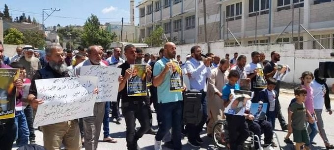 وتجمع المواطنون أمام منزل الأسير خلوف، حاملين اليافطات التي تؤكد على دعم الأسرى المضربين عن الطعام، ومنهم أيضا الأسير طارق قعدان وحلبية وآخرون.