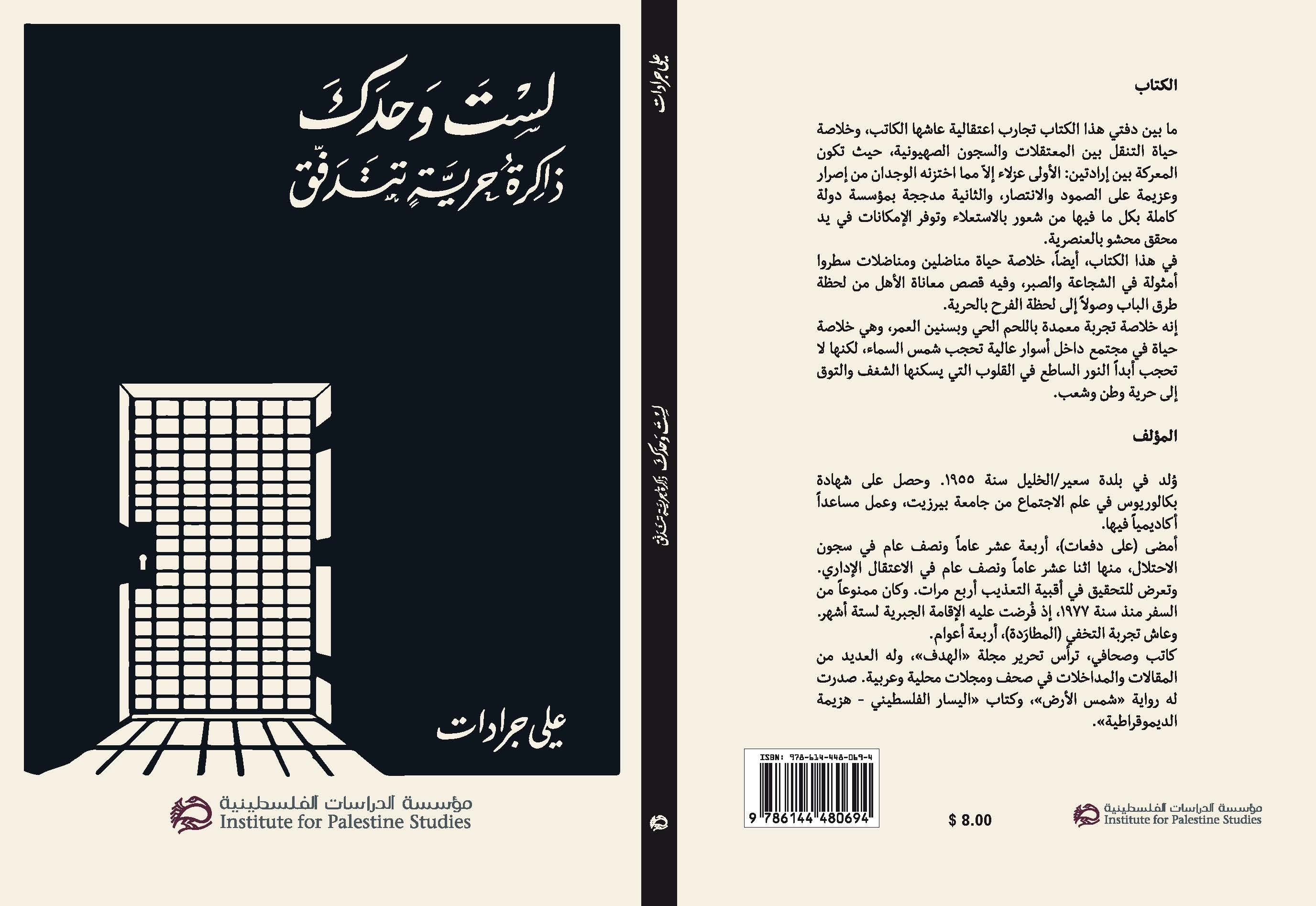 صدر حديثاً عن مؤسسة الدراسات الفلسطينية كتاب "لست وحدك: ذاكرة حرية تتدفق"، من تأليف علي جرادات.