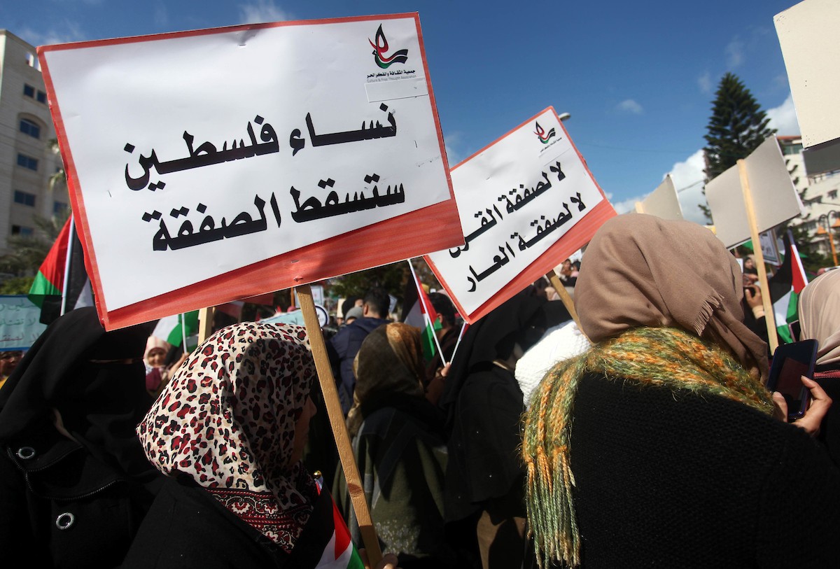 أكّدت الأطر والمؤسسات والمراكز النسوية الفلسطينية "الرفض القاطع لصفقة القرن التصفوية والتمسك براية النضال من أجل الحقوق الوطنية المشروعة، والحق في تقرير المصير وإقامة الدولة الفلسطينية المستقلة على حدود الرابع من حزيران 1967 وعاصمتها القدس وعودة اللاجئين بناء على قرار 194".