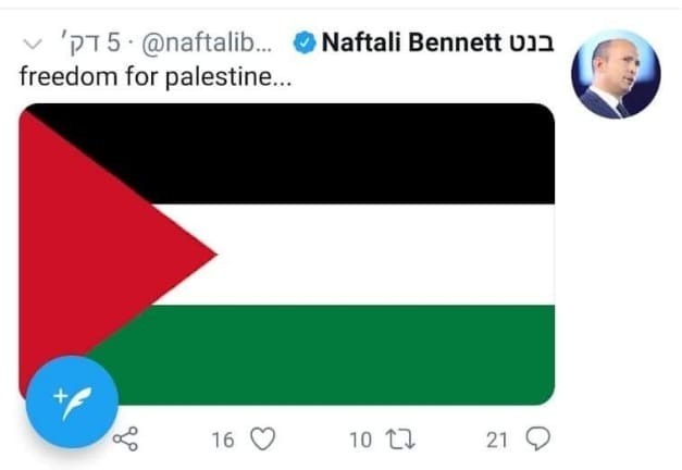 اخترق قراصنة، فجر اليوم السبت، حساب وزير جيش الاحتلال نفتالي بينيت، على "تويتر"، ونشروا صورًا للعلميْن الفلسطيني والتركي، مُرفقة بعبارات مناهِضة للكيان الصهيوني، وداعمة لفلسطين.