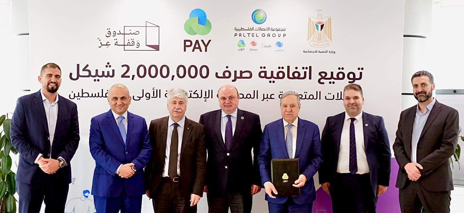 وقعت مجموعة الإتصالات الفلسطينية ووزارة التنمية الاجتماعية، اتفاقية صرف "جزء من مجمل التبرع الذي قدمته المجموعة لصندوق وقفة عز عبرالمحفظة الإلكترونية الأولى في فلسطينJawwal Pay وذلك بصرف مليوني شيقل لعائلات فلسطينية تندرج بقائمة وزارة التنمية الاجتماعية من العائلات المتضررة خلال أزمة الكورونا".