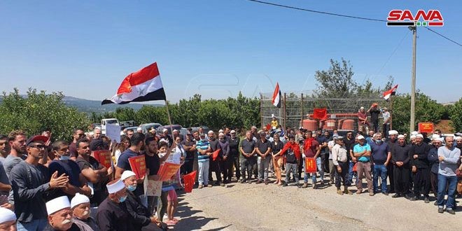 من جديد، نظّم أبناء الجولان العربي السوري المحتل، اليوم السبت، وقفة احتجاجية رفضًا لمُخطّط الاحتلال الصهيوني إقامة مراوح هوائية (توربينات) على أراضيهم الزراعيّة.