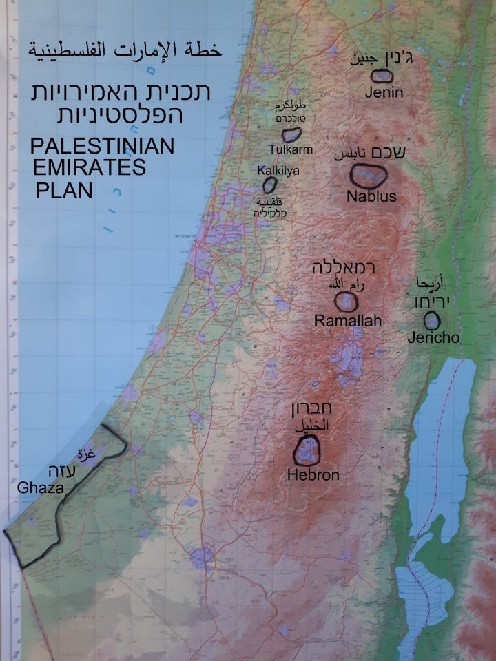 ودعا كيدار لاعتماد خطة يجب على الكيان دعمها برأيه لإنشاء سبع إمارات على أنقاض السلطة الفلسطينية في مدن الضفة : جنين ونابلس وطولكرم وقلقيلية ورام الله وأريحا و الخليل العربية، بالإضافة إلى غزة. إلخ، ومن خلال اتفاقيات ثنائية بينها وبين "إسرائيل".
