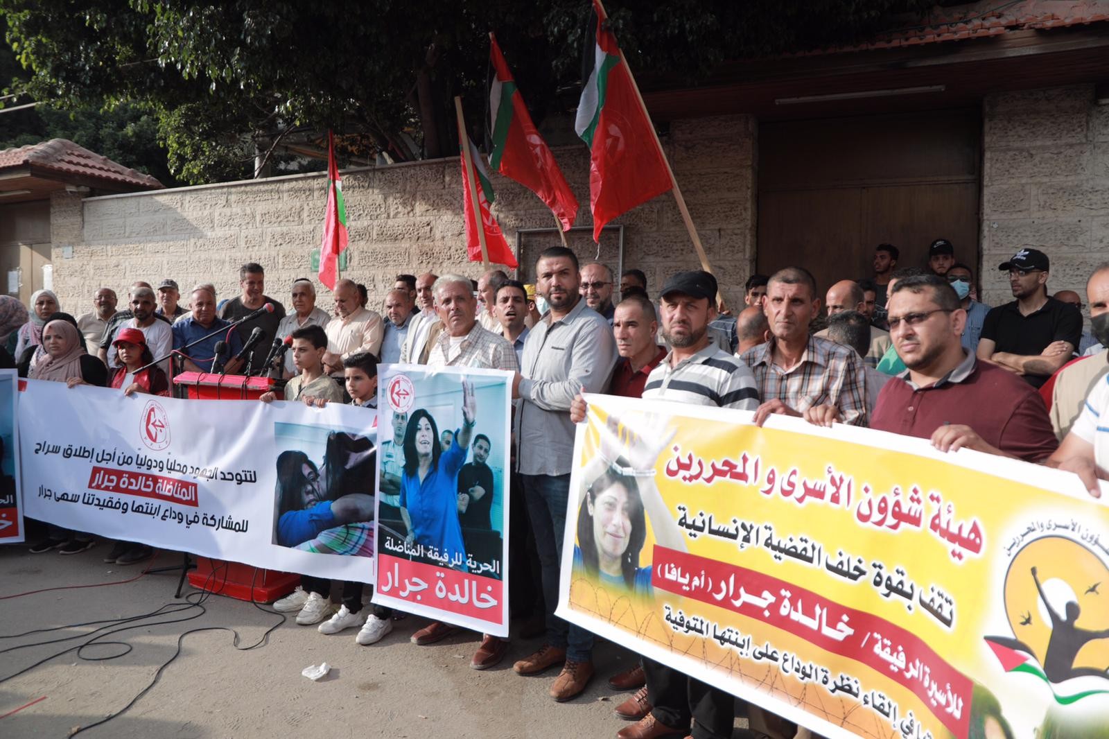 نظمت الجبهة الشعبية لتحرير فلسطين مساء اليوم الاثنين، أمام مقر الصليب الأحمر بمدينة غزة وقفة إسنادية مع الرفيقة المناضلة الأسيرة خالدة جرار، التي فقدت ابنتها سهى أمس الأحد.