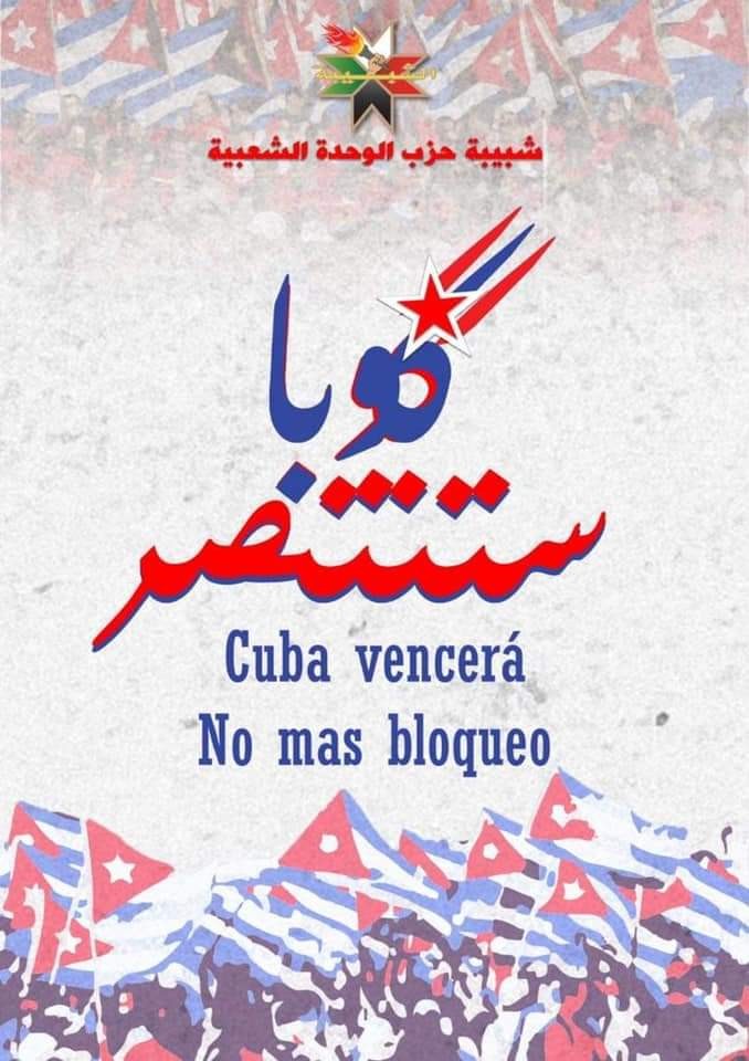عبرت شبيبة حزب الوحدة الشعبية الأردني باسمها ونيابة عن جميع الوطنيين والتقدميين والثوريين في الأردن وفي الوطن العربي عن وقوفها إلى جانب الشعب الكوبي المكافح، وعن دعمها صموده ومقاومته، دون قيد أو شرط، لحماية إنجازات الثورة وضمان سيادته واستقلاله.