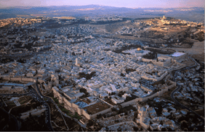 الشكل 1. منظر جوي لمدينة القدس القديمة ، باتجاه الشمال الشرقي. تصوير: حنان إسخار