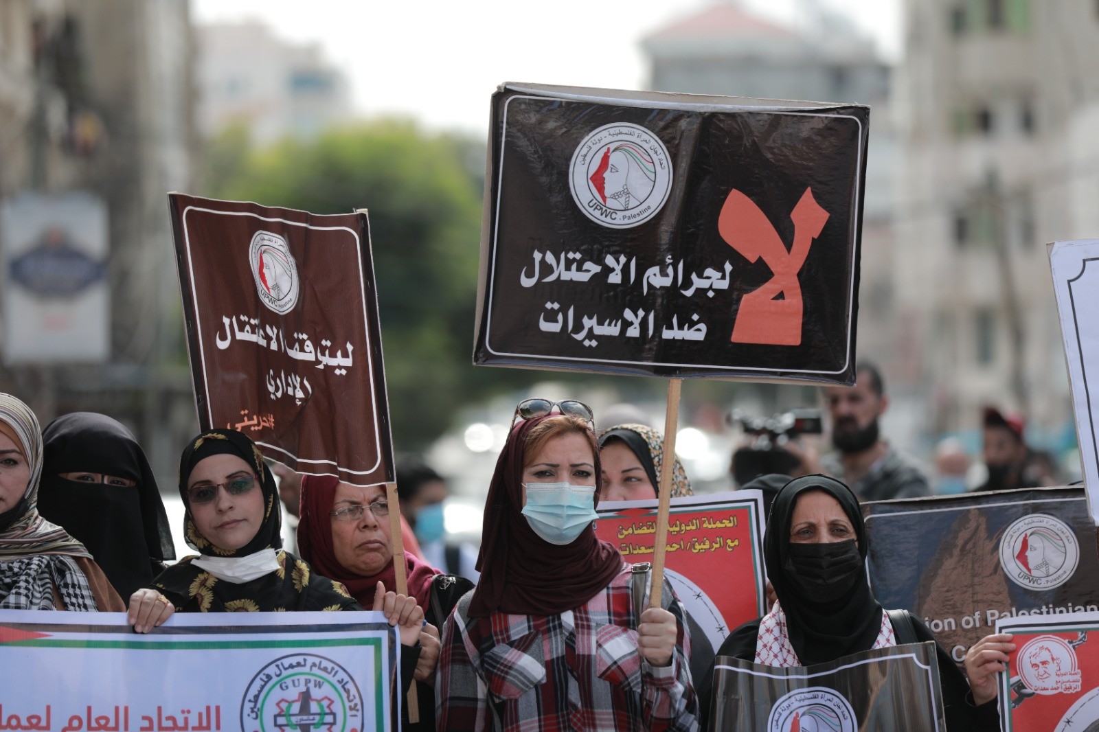 نظّمت الجبهة الشعبية لتحرير فلسطين واتحاد لجان المرأة الفلسطينيّة، صباح اليوم الاثنين، وقفة إسنادية مع الأسيرات والأسرى، واحتفاءً بتحرر الرفيقة المناضلة خالدة جرار "أم يافا"، وذلك أمام مقر الصليب الأحمر بمدينة غزة.