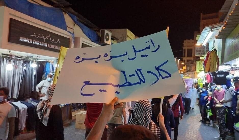 وتتواصل الاحتجاجات في شوارع البحرين، منذ أمس الجمعة، وذلك رفضًا للتطبيع ولزيارة وزير خارجية الاحتلال الصهيوني المجرم يائير لابيد، التي أكّدت في سياق ذلك المبادرة الوطنية البحرينية رفضها التام لكل أشكال التطبيع مع كيان الاحتلال.