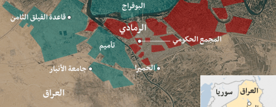 أعلن مسئول أمني عراقيّ في مدينة الخالدية، دخول القوات الأمنية لمنطقة الحوز بمدينة الرمادي الواقعة شرق محافظة الأنبار غرب البلاد، مشيراً إلى معارك عنيفة تجري بين تلك القوات ومسلّحي تنظيم الدولة "داعش" في محيط مبنى التجمع الحكومي.