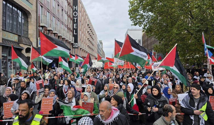 شهدت العاصمة الألمانية برلين ظهر اليوم مظاهرة جماهيرية ضخمة انطلقت من أمام مبنى الـRotes Rathaus (البلدية الحمراء)، بدعوة من اللجنة الوطنية الفلسطينية الموحّدة، وبمشاركة واسعة من مجموعات ألمانية