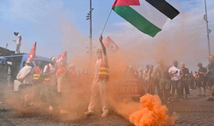 قال الاتحاد العام للعمل في فرنسا اليوم الخميس إن العمال في ميناء بجنوب فرنسا يمنعون نقل شحنة معدات عسكرية تزن 14 طنا إلى إسرائيل. وقال الاتحاد العام للعمل إن العاملين يرفضون المشاركة في ” الإبادة ا