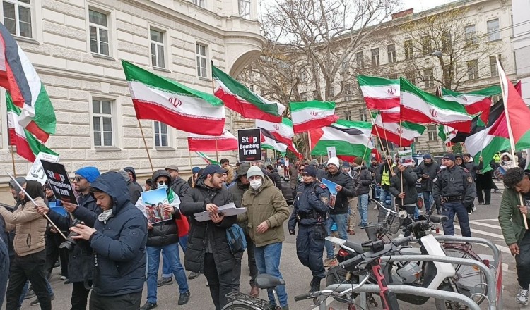 تجمهر أكثر من مائة من الناشطين العرب والإيرانيين والمتضامنين النمساويين في العاصمة النمساوية عند النصب التذكاري السوفييتي الذي اقيم لتخليد تحرير فيينا من النازية على أيدي الجيش الأحمر، بمناسبة يوم الأ