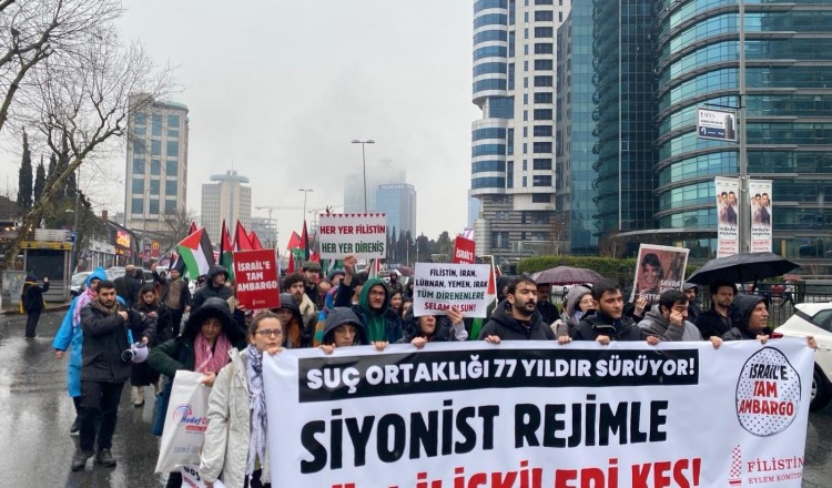 شهدت مدينة إسطنبول اليوم السبت، وقفة احتجاجية حاشدة تزامناً مع الذكرى السابعة والسبعين لاعتراف تركيا بدولة الاحتلال الإسرائيلي. واحتشد المتظاهرون للمطالبة بضرورة سحب الاعتراف الرسمي بـ "النظام الصهيون
