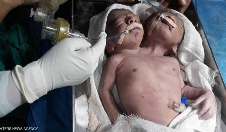 أنجبت سيدة في الهند، توأما سياميا بجسد واحد ورأسين اثنين، وظلا "الشقيقان" على قيد الحياة لأربع وعشرين ساعة قبل أن يفارقا الحياة. وجرى ربط المولودين بجهاز