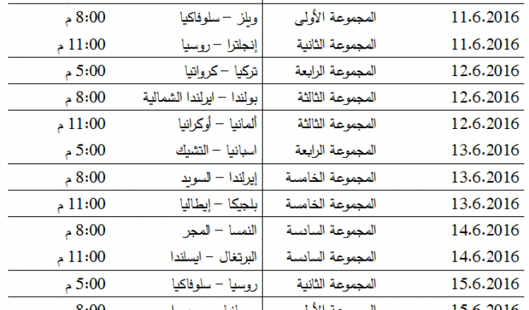 تنطلق في العاشر من الشهر الجاري مباريات كأس الأمم الأوروبية التي تستضيفها فرنسا، وتتواصل البطولة التي تتزامن معظم مبارياتها مع شهر رمضان المبارك على مدار شهر كامل، وفيما يأتي جدول مباريات الدور الأول من البطولة بتوقيت فلسطين:
