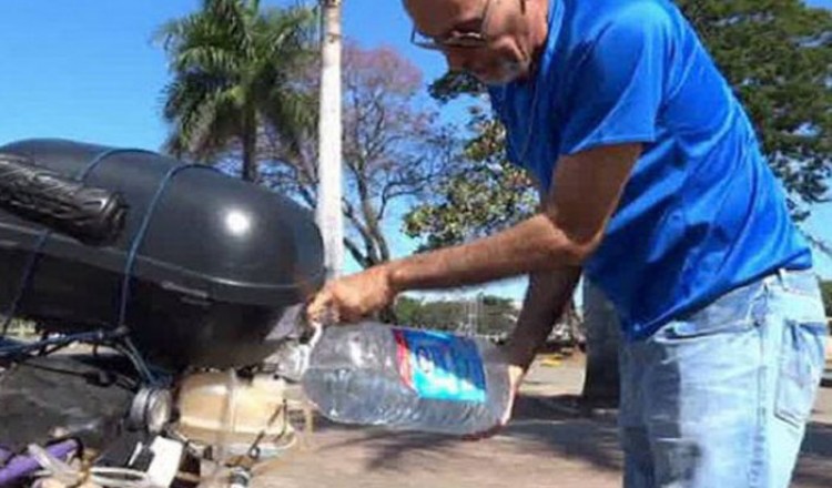 يتوقف البرازيلي ريكاردو اسيفيدو قرب نهر تيتي في ساو باولو لتزويد دراجته بالمياه بدل الوقوف أمام محطة البنزين منذ أن ابتكر دراجة نارية يقول إنه يمكنها أن تسير 500 كيلومتر بلتر واحد من الماء بعد أن عانى من الارتفاع المتواصل لأسعار الوقود في بلا
