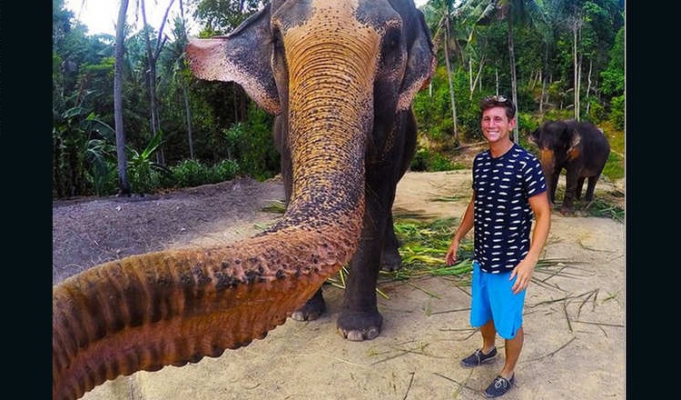 قام الشاب الكندي كريستيان لي بلانك، 22 عاماً، بالذهاب إلى جزيرة "Koh Phangan" التايلندية، و وقف إلى جانب أحد الفيلة، الذي تولى زمام الأمور، وحمل الكاميرا بخرطومه لالتقاط الصورة. ويقول