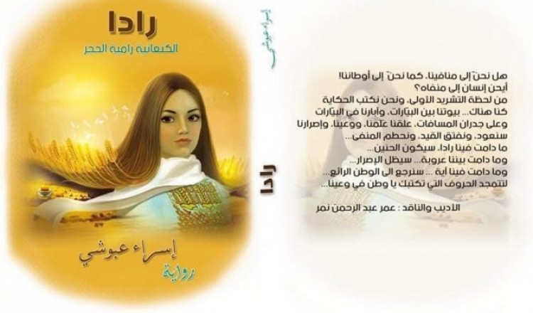 امرأة تبحث عن طعم حياة. الرواية من حيث الشكل والتي تأخذ اسم فتاة رادا وهذا الاسم غير متداول بالبلاد العربية ويعني الريح اللينة، وفي اللغة الكنعانية تعني رامية الحجر. في الإهداء نقرأ( إلى وطن أر