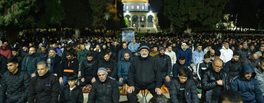 أدى نحو 60 ألف مصلٍ، مساء اليوم الخميس، صلاتي العشاء والتراويح في رحاب المسجد الأقصى بالقدس المحتلة. وقالت دائرة الأوقاف الإسلامية بالقدس، إن 60 ألف مصل أدوا العشاء والتراويح في رحاب المسجد الأقصى،