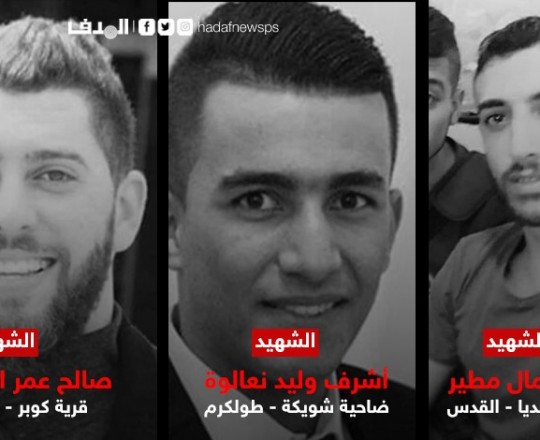 اغتالت قوات الاحتلال "الإسرائيلي"، الليلة الماضية وفجر الخميس، ثلاثة فلسطينيين، في القدس ورام الله ونابلس، بينهم المطارد لأكثر من شهريْن أشرف نعالوة منفذ عملية بركان، والمطارد صالح البرغوثي منفذ عملية