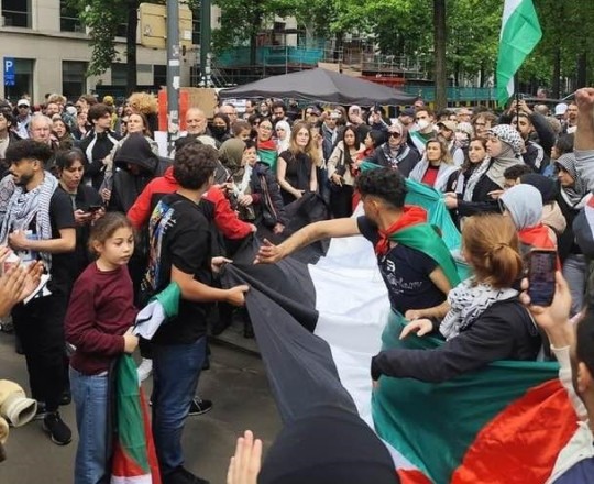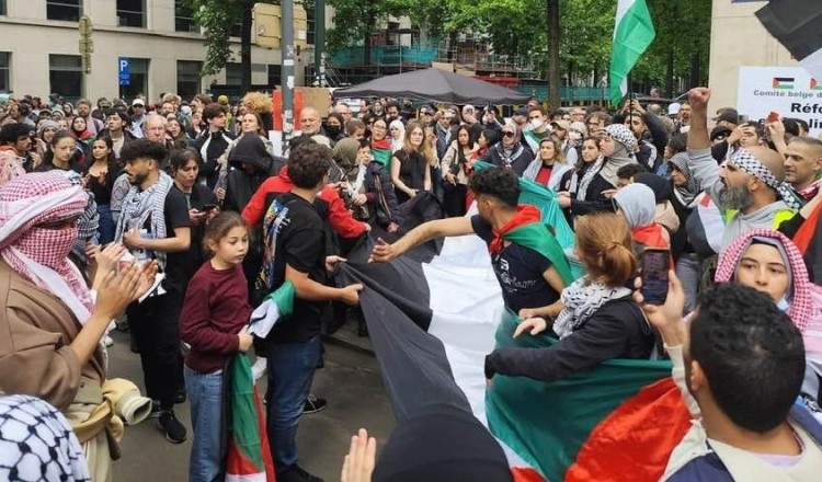 نظّمت جمعية حنظلة؛ وجمعية الصداقة البلجيكية الفلسطينية؛ والجالية الفلسطينية في بلجيكا تظاهرة حاشدة، وسط إجراءات أمنية مشددة من قبل السلطات البلجيكية. وشارك في التظاهرة المئات من المتضامنين وط