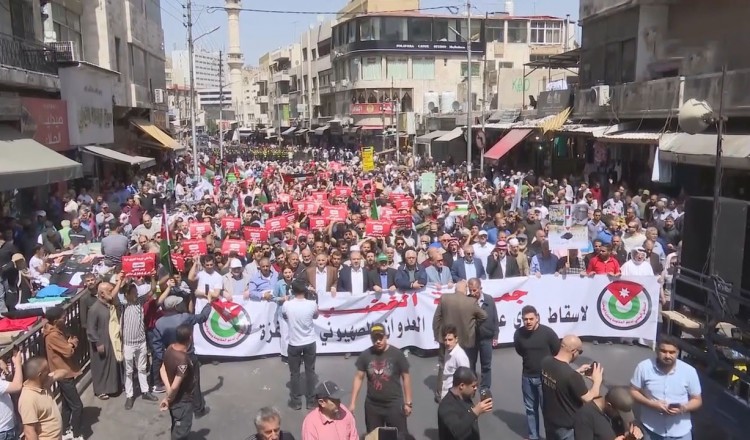 يستمر الحراك الأردني الداعم لفلسطين وغزة، فبالإضافة إلى تواصل وقفة الكالوتي، دعا الملتقى الوطني لدعم المقاومة إلى مسيرة جماهيرية حاشدة من وسط البلد انطلقت بعد صلاة الجمعة الأخيرة من رمضان 5 نيسان